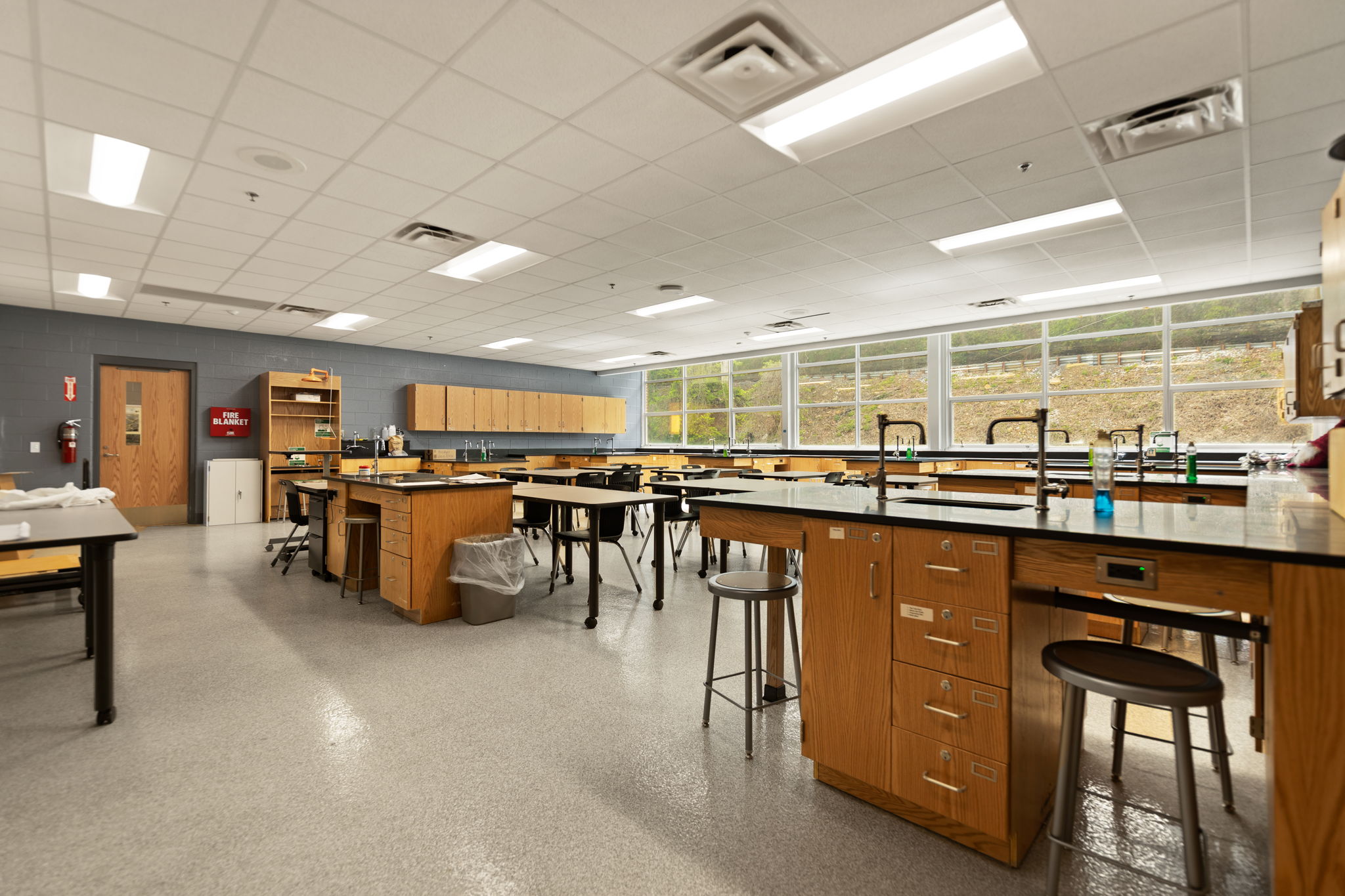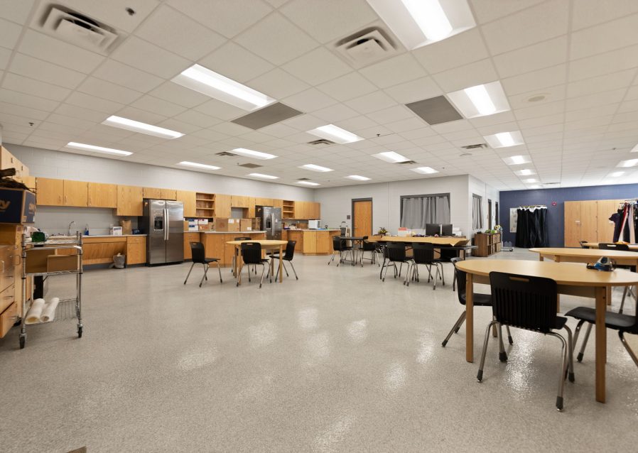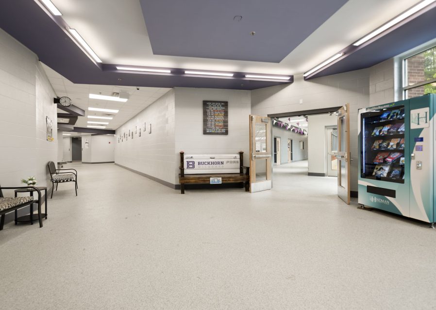 The Buckhorn School Flood Renovation & Repair was conducted after significant flooding occurred in Perry County, KY in 2022. The project consisted of a complete interior renovation of the school, including all new flooring, ceilings, paint, lockers, and casework. The school’s gymnasium also received new flooring, bleachers, and a scoreboard. Work also included the installation of new kitchen equipment.