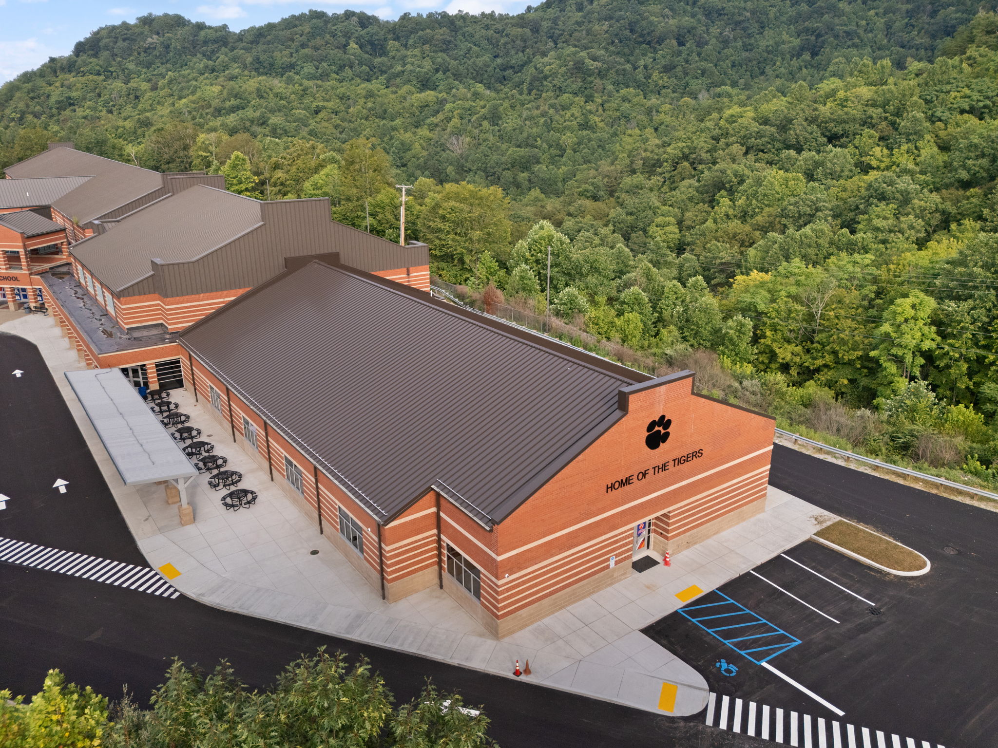 The Mullins Addition project is a 13,815 SF single-story 8 classroom addition located at 101 Tiger Way, Pikeville, KY 41501. Construction consisted of concrete footings and stem walls, slab on grade and CMU-bearing walls. The addition has a steel joist roof structure with a combination of metal and EPDM roofing. The interior of the addition consists of 8 classrooms, a set of restrooms, and a mechanical platform. Additionally, the cafeteria was extended, and the existing exterior canopy was converted to an interior corridor. Exterior site improvements included storm piping and paving overlay.