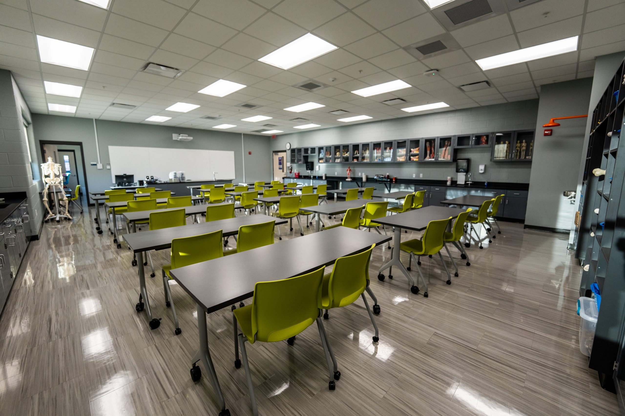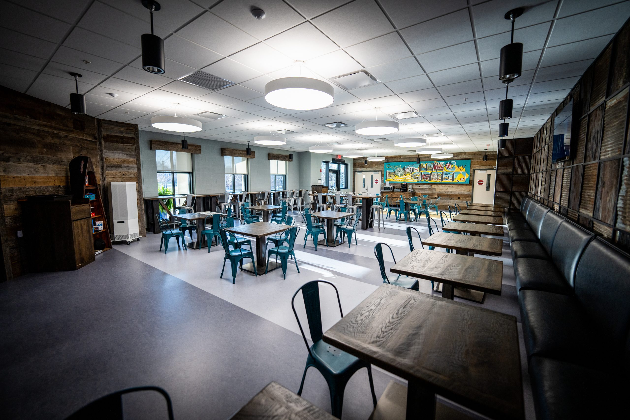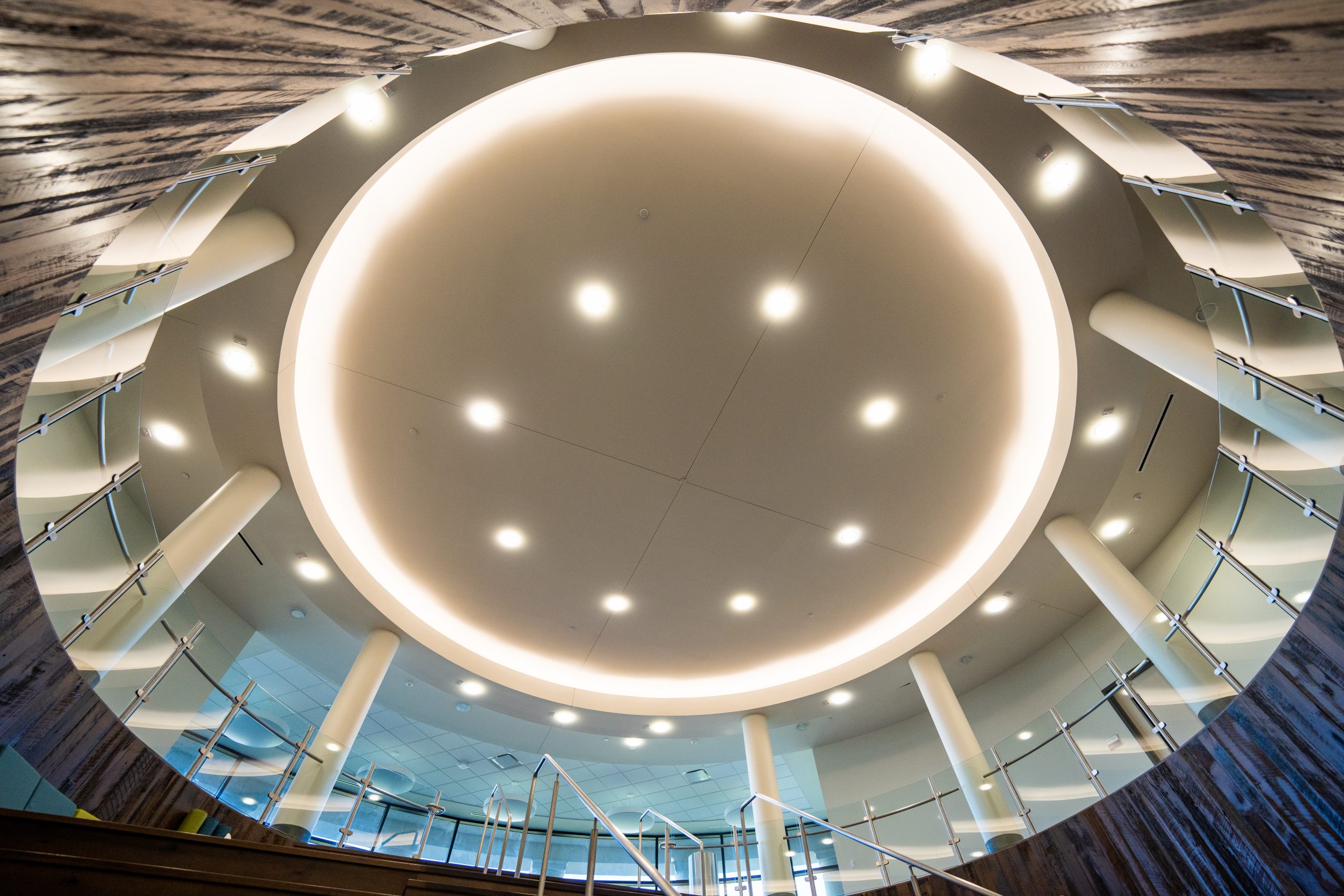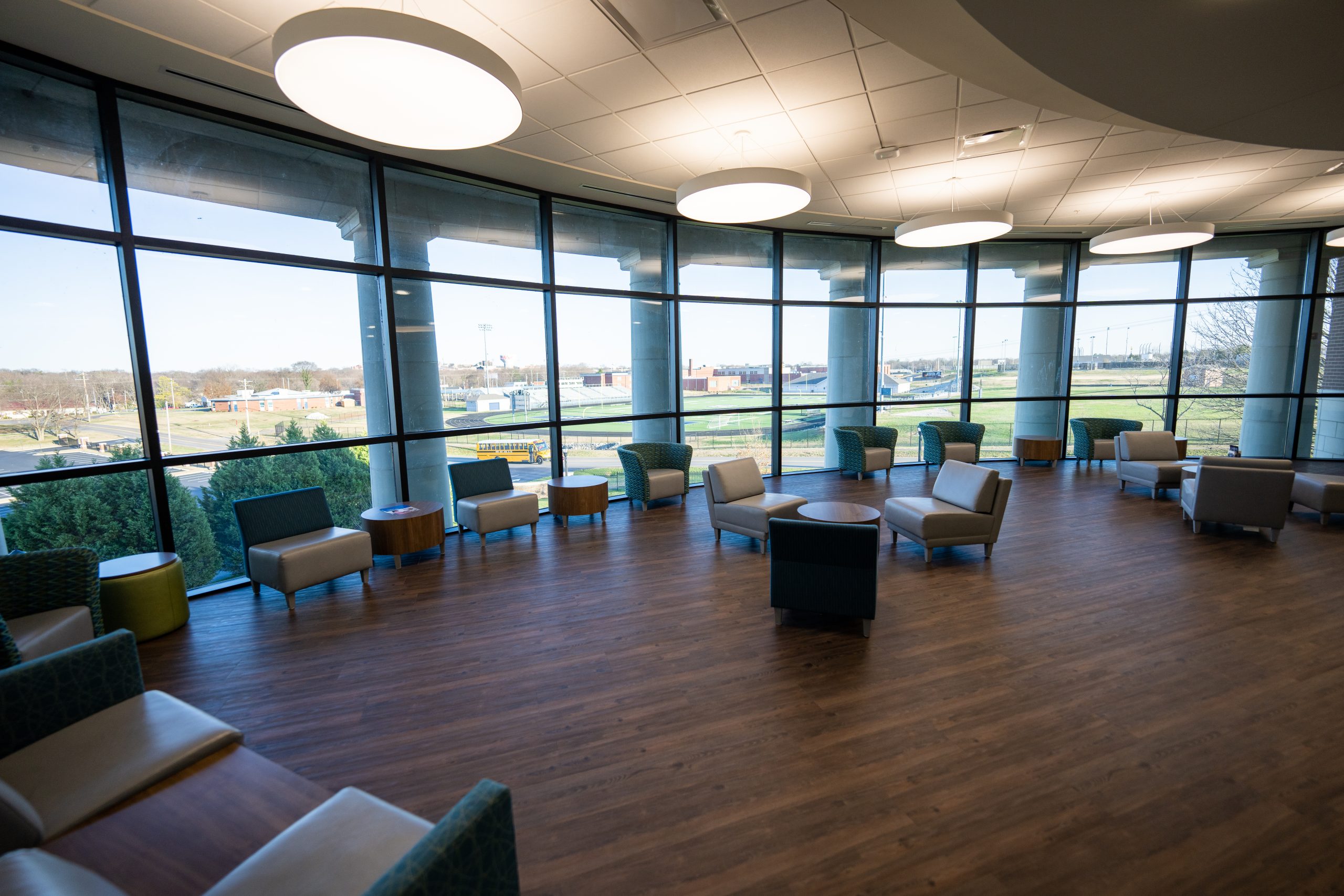 The Southcentral Kentucky Community & Technical College Instructional Complex is a two-story Vocational Instructional Complex. Construction consisted of traditional spread footings and a mixture of CMU and steel-bearing capacities. The facade of the building is primarily stone/brick veneer with a top band of EIFS. The roof is a modified bituminous material, while the HVAC is ran from a Geothermal System with 60 wells. The main attraction of the building is the rotunda-style reclaimed wood grand stairs that serve as a study or lecture area for the students/staff. The building layout is a mixture of classroom and lecture spaces with fully functional labs and prep rooms for Biology, Microbiology, Chemistry, Nursing Simulation, Observation, Surgery, Ultrasound, and Radiology. The building also has a fully functional kitchen and cafeteria that serves as a gathering place for the entire campus.