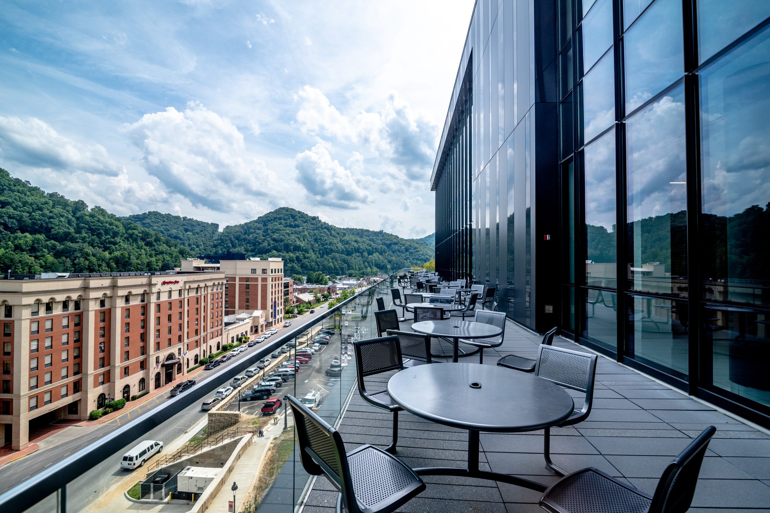 The University of Pikeville Health Professions Building is a seven-floor concrete and structural steel building constructed on a 45-degree slope in downtown Pikeville, KY. It houses Kentucky’s only School of Optometry and was constructed to connect to the University’s School of Nursing. The interior is comprised of clinical education laboratories, science laboratories, primary care operatories, state of the art classrooms, offices, a food court which includes a Chick-fil-A, Einstein Bros Bagels, and a Provisions on Demand Market. A 7th floor pavilion provides space for campus events, conferences, weddings, or proms.