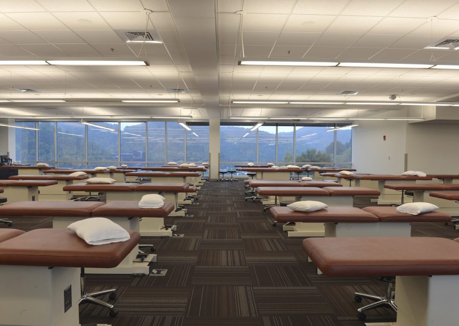 The University of Pikeville School of Osteopathic Medicine is a nine-story 85,000 SF facility. The school was built on a side of a hill (45 degrees) on a caisson foundation with an extremely tight construction site. The structure is steel frame with a precast concrete and glass exterior wall system. This facility houses 12 specially equipped examination rooms, 2 lecture halls, a gross anatomy lab, 2 research labs, small group classrooms, student study space, additional staff, faculty and administrative offices and the campus cafeteria. The school also has an Osteopathic Manipulative Medicine Lab and houses the free outpatient clinic.